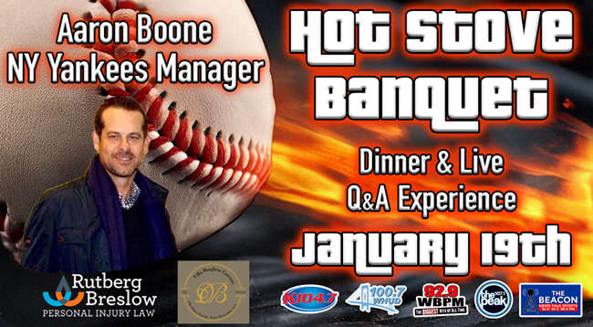 On Monday night, January 19th, Rutberg Breslow Personal Injury Law presents our first ever Hot Stove Banquet at the Villa Borghese in Wappingers — and yes, Aaron Boone is the guest.